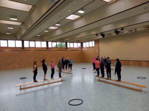Monika Römming und Ulrike Heß durften als Referentinnen der Bayrischen Sportjugend eine Fortbildung zum Thema „Laufen, Werfen und Springen mit Kindern“ für ÜbungsleiterInnen leiten und die TeilnehmerInnen aus der Region waren mit Eifer dabei.